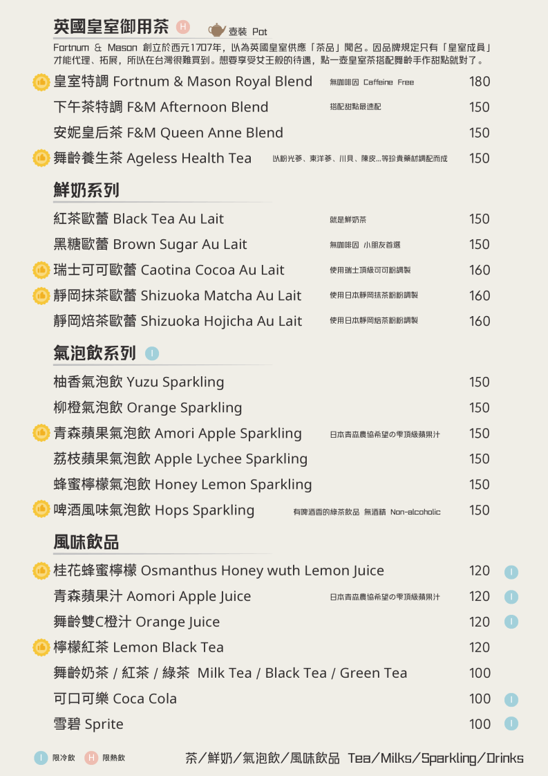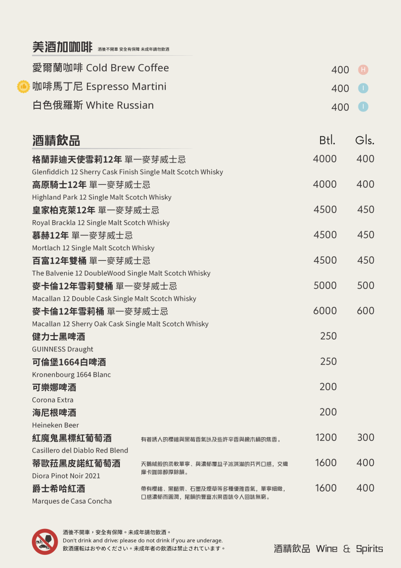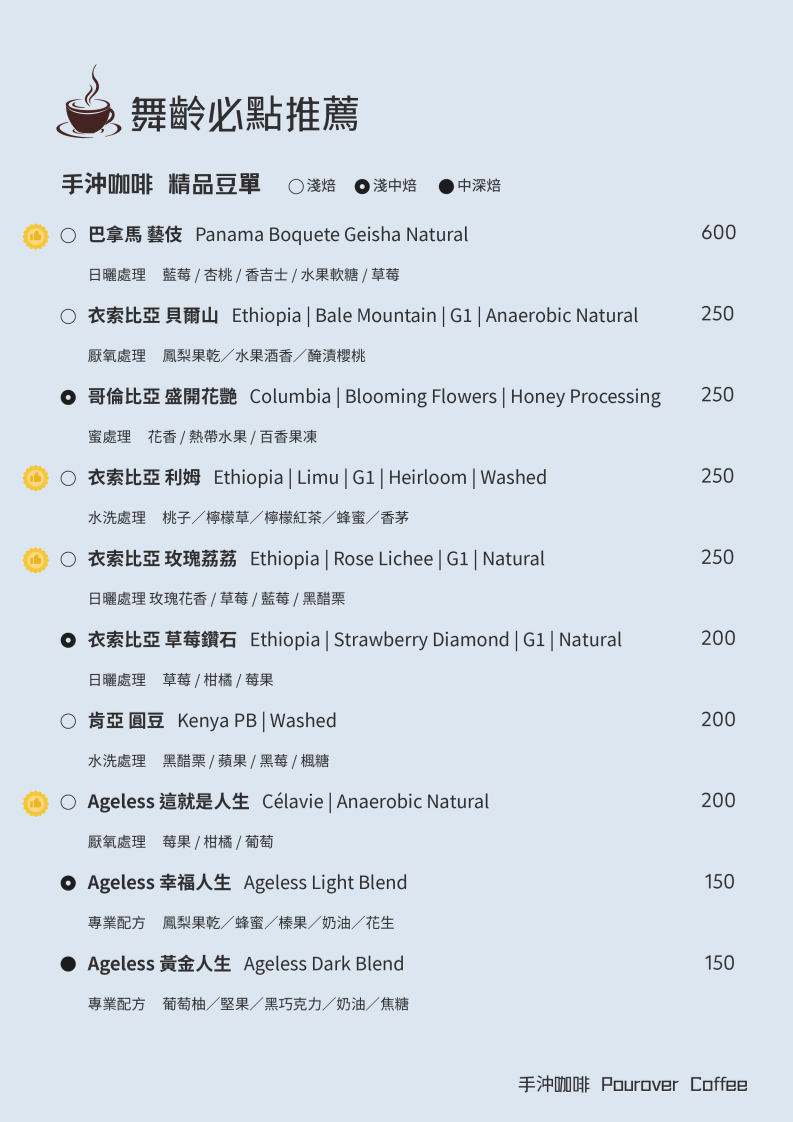 Bar Ageless Café 舞齡咖啡館 舞齡吧 Menu